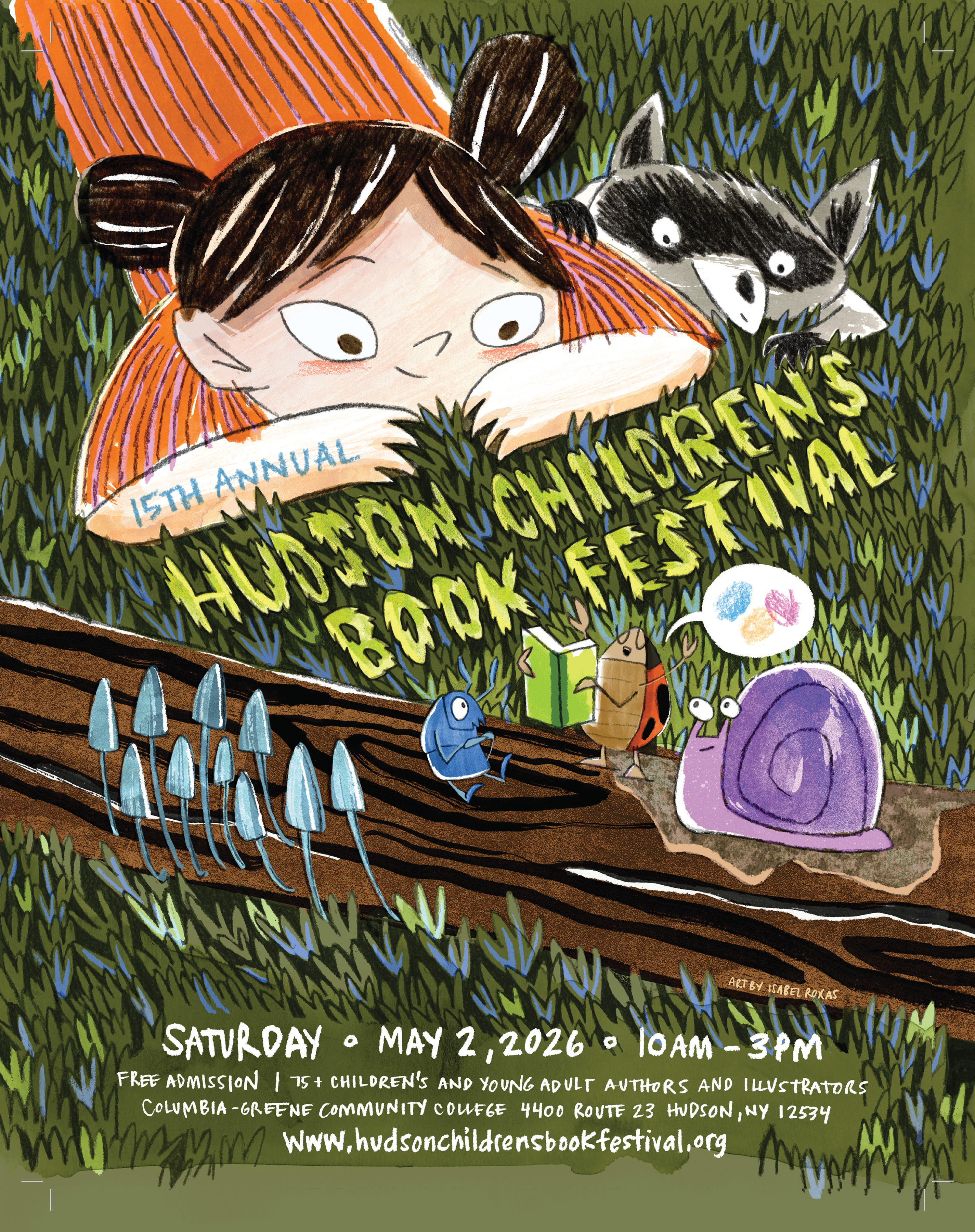 We are so excited to share the poster for the 2026 Hudson Children's Book Festival! This gorgeous art was created by the talented Isabel Roxas. Meet her along with 75+ other incredible authors and illustrators at the 15th annual festival on May 2, 2026 at Columbia-Greene Community College.